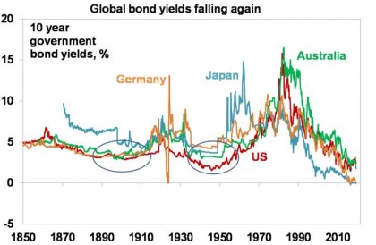 Third, various factors may be flattening the US yield curve which may not be indicative of an approaching US recession including the Fed’s new-found dovishness, negative German and Japanese bond yields holding down US yields, the realisation that central banks won’t be dumping their bond holdings and high investor demand for bonds post the GFC as they have proven to be a good diversifier – rallying every time shares have a major fall.